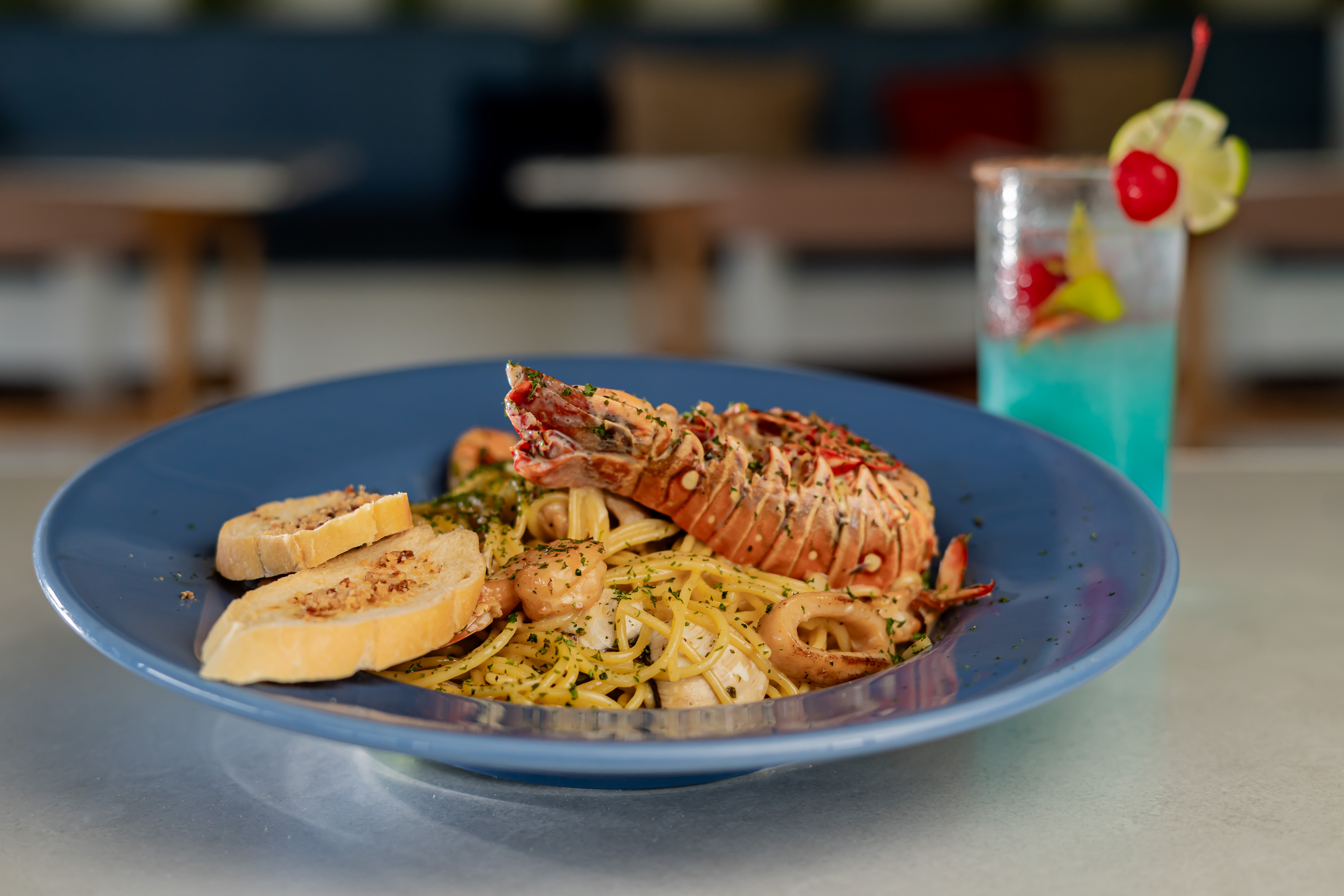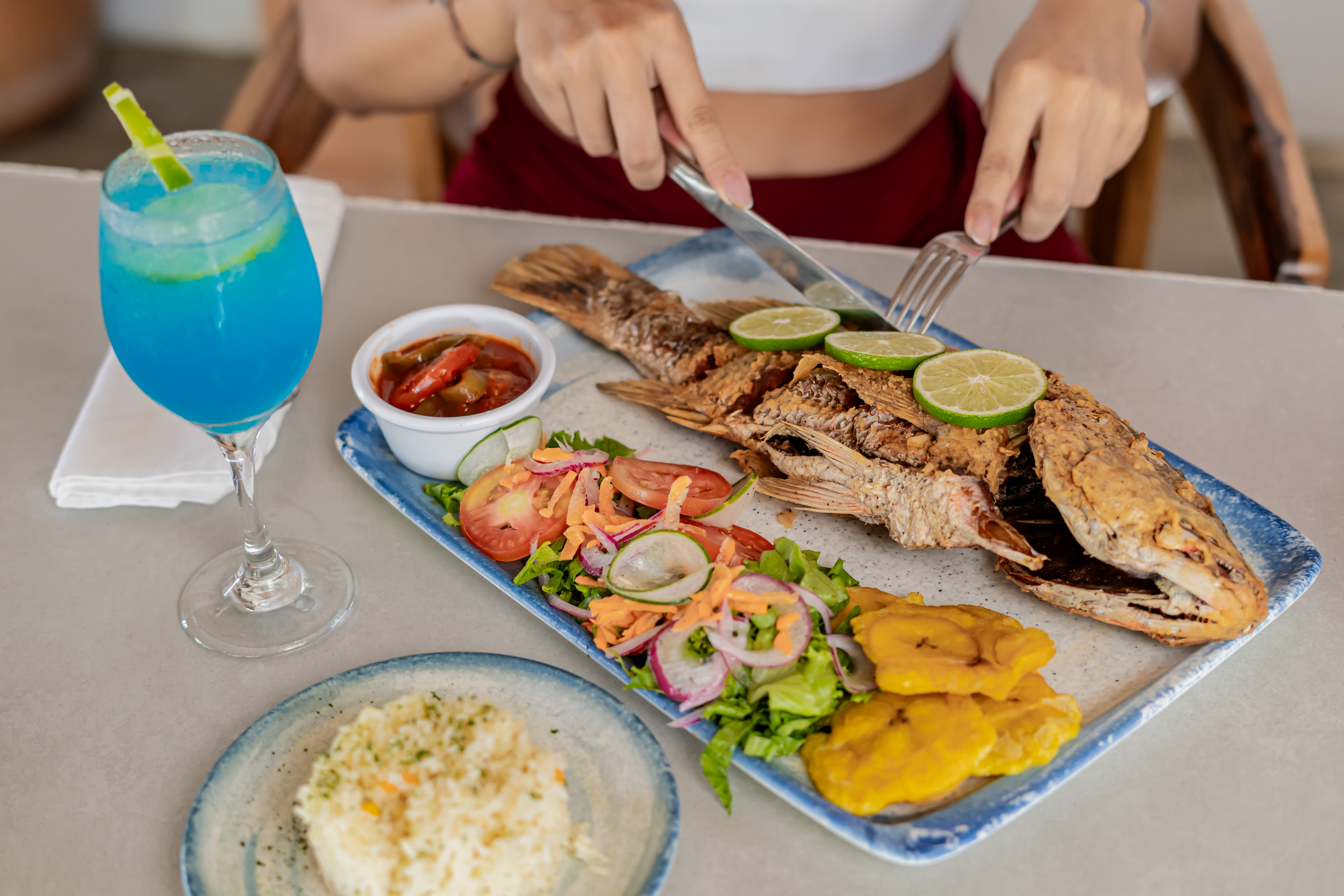 Filete fresco del día, bañado en nuestra salsa especial de mariscos, acompañado de papas rústicas y ensalada fresca.